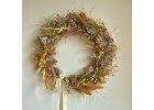 Úžasňák. Připravte se na pozdní léto/podzim. Rozměr 35cm Plný umělých kytiček dozdobený přírodními máky, pšenicí, dřevěný domečky vlastní výroby a travinou